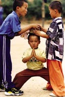 Yongxin's most pressing concern is that Shaolin kungfu is being corrupted by standardized sports competition. In 1928, the China National Martial Arts School was established and brought martial arts to world sports competitions, albeit modified to suit Western competition rules. In 1959, martial arts became a formal competitive event in the First National Sports Games, and was accepted as a new event in the Asian Games in 1990. It was thus totally standardized. "In the standardization process, Shaolin kungfu has undergone dramatic changes," Yongxin says. "The original emphasis of Shaolin kungfu is on contained internal organ exercises, which have now been superseded by those similar to acrobatic and dancing performances. Such styles are popular in martial arts schools, and their ultimate aim is very simple -- to win gold medals. This is not the Shaolin spirit."
