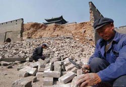 "The section of ancient wall looks fine on the outside but the tamped earth inside the layer of bricks had slackened," Gao told China Daily via a telephone interview. "A gust of wind can blow out dry earth from the bricks."