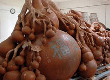 The 3.16-meter-long, 1.38-meter-wide and 1.58-meter-high pottery artwork is made up of 116 gourds with different sizes. It boasts the largest of its kind in the world.
