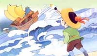 Ma uses his brush to help the poor only. When a local despot asks him to paint a crock of gold, he refuses. He later complies with the despot's order, only to paint a golden mountain in the sea and send the despot and other greedy people in a fancy ship on a stormy voyage.