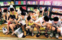 She is not alone. During the summer vacation, book stores in Shanghai not only sell books, but also function as libraries.