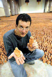 Regardless of Gormley's intention, many interpretations are to be made from "Asian Field." One is that power, contrary to the treasure of Xi'an, comes directly from ordinary people. "Gormley's work has ignited a new thought," says Li Lei, deputy president of the Shanghai Oil Painting and Sculpture Institute. "We often think art should be above life, but 'Field' shortens the gap. It is closer to us." For Gormley, an exact understanding of his work is no longer important, he'd rather have more people involved in its creation.