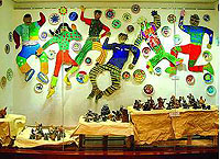 An interesting part of the exhibition is a series of works by Wang Qiang, 14, a Down's syndrome boy living in the Changsha Children's Welfare Home in Central China's Hunan Province.