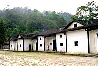 Along the lane, all the walls and ground are paved with gray bricks. On a nearby wall are eight stones inscribed with some well-known poems written by Mao.