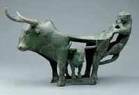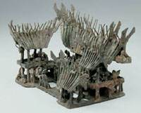 The bronze sculptures feature vivid scenes of local farming, hunting, weaving and dancing and the spectacles of ritual ceremonies and battles. They have been found on the lids of cowrie containers, the covers of the bronze drums and other decorative wares and models.