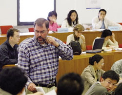 The third market is not so much English teaching as test preparation. This method is dominated by local operators and is geared toward students preparing for English proficiency tests like GRE, TOEFL and IELTS, which qualify them for further studies abroad. The Beijing-based New Oriental Education Group hit the industry a decade ago and has achieved almost cult status in this sector. It branched out to Shanghai in September 2000 and over 200,000 students have been through the school here in the past four years. Test preparation is not focused on reading English so much as reading between the lines, learning what to expect in various exams and mastering the systems, patterns and probabilities of specific test papers. It's the ultimate antithesis to learning English for its own sake. "Some teachers would have almost ethical problems with this," points out Ken Carroll.
