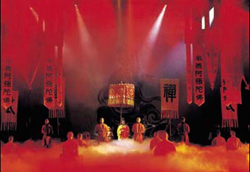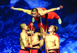 In the stage show, these scenes are put in the context of the cycle of seasons. Summer takes the spectator through a panorama of the monks' lives in their temple showing aspects of Buddhism, the meditations and their practices and the three other seasons present aspects of the martial arts form.