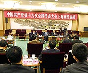 Delegates of Shanghai discuss Jiang Zemin's report to the CPC 16th National Congress.