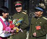 Delegates from the PLA Air Force discussing Jiang's report to the CPC 16th Congress.