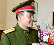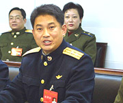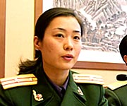 Delegate Lei Min from the Armed Police speaking at a discussion.