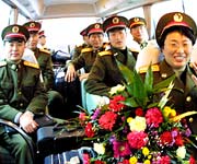 Delegates from the PLA Navy discussing the report delivered at the CPC 16th Congress.
