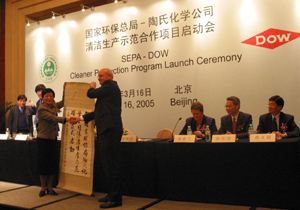 The Dow Chemical Company and the State Environmental Protection Administration (SEPA) of China today launch a National Cleaner Production Pilot Project in the country, with Dow contributing 6 billion yuan ((US$724.94 million) over the next three years to support the project.