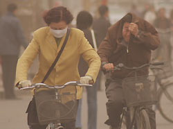 However, compared with the years from 1999 to 2002, 2005 has so far seen far fewer sand storms, today's being just the third North China has experienced this spring.