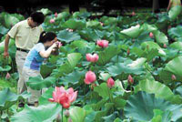 A lotus exhibition at the Shanghai Botanic Garden attracts lots of tourists.