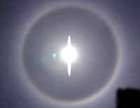 The sun was encompassed by a splendid aureola with the color changing from red in the inner circle to purple in the outer circle, attracting crowds of people on the streets to look at the spectacle.