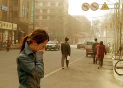 Around 3 pm Tuesday, drifting and flowing sand was observed in the mid-west parts of Gansu and Inner Mongolia, southern parts of Hebei and western Liaoning provinces.