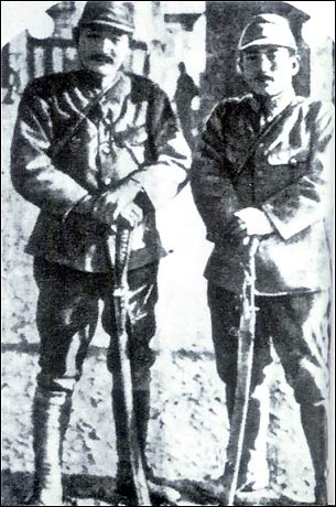 During the massacre, Japanese troops competed in killing people. Shown are two slaughterers Noda Iwao (right), who killed 105 people, and Toshiaki Mukai who killed 106.