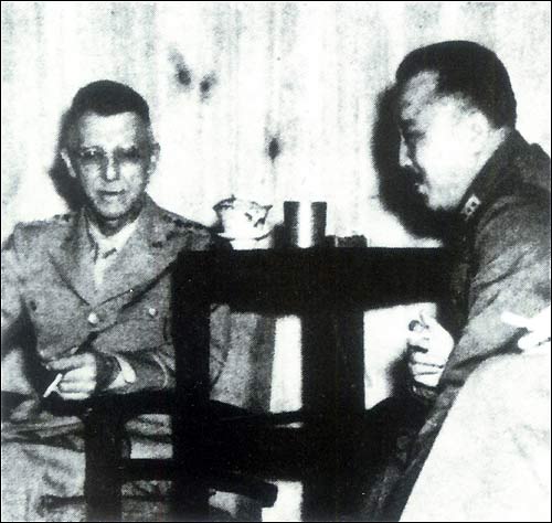 Wei Lihuang, commander of the Chinese Expeditionary Force in Burma, discussed battle plans with General Stilwell in Baoshan, Yunnan.
