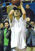 Yunnan Honghe's guard, Yu Juankai, led the three-point shoot-out preliminary contest at All-Star weekend in the Chinese Basketball Association.