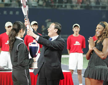 Both players appeared rattled by the boisterous crowd, several times playing after a point was complete because they couldn't hear the call. Professional tennis is new to China, and spectators clapped and cheered during points and between serves. Cell phones rang repeatedly.