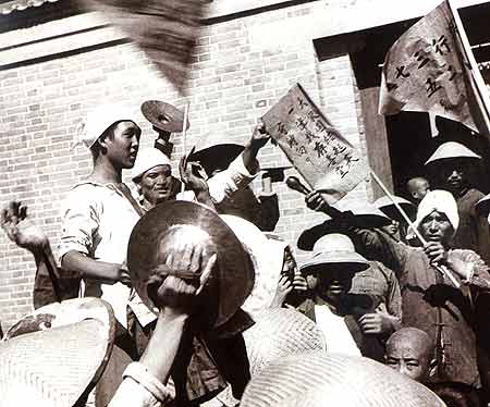 Eighth Route Army soldiers celebrating victory on the Great Wall.