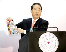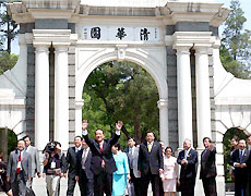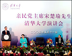 | Soong delivers a speech on May 11 at Tsinghua University, Beijing. |