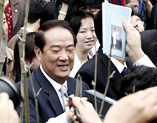 | Soong (L.) meets Wang Daohan, president of the mainland-based Association for Relations Across the Taiwan Straits in Shanghai on May 8. |