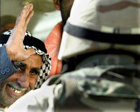 US forces freed Friday morning about 300 Iraqi prisoners from the notorious Abu Ghraib jail, which has been the platform of prison abuse scandals. A former detainee waves as he's released from Abu Ghraib, May 14, 2004.(Xinhua/AFP Photo)