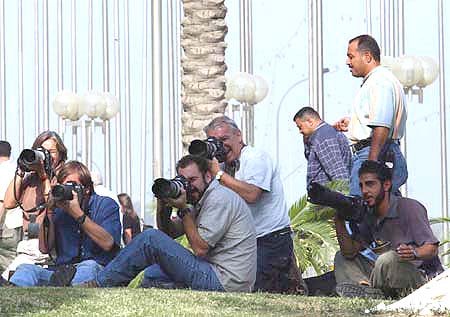 Journalists take pictures outside a US court-martial in Baghdad, Iraq, May 19, 2004. The court-martial sentenced US soldier Jeremy Sivits to one year in jail over the abuse of Iraqi prisoners on May 19. Sivits is the first US soldier getting jail sentence following the exposal of prisoner abuse scandal in Abu Ghraib prison in Baghdad. (Xinhua Photo)