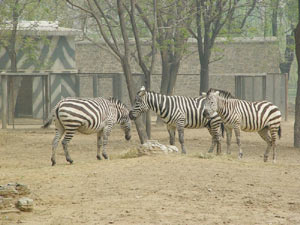 Beijing Zoo, situated to the west of Beijing Exhibition Center, was known for a short time after the founding of the People's Republic as the Western Suburbs Park (Xijiao Gongyuan). The grounds combine cultivated flower gardens with stretches of natural scenery, including dense groves of trees, stretches of grassland, a small stream, lotus pools and small hills dotted with pavilions and halls.