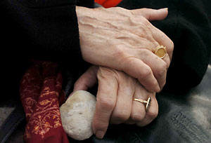 Survivors of the Nazi death camp Bergen-Belsen mark the 60th anniversary of the camp's liberation in 1945 and mourn for victims of the Holocaust, April 17, 2005. (Xinhua Photo)