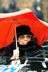 A survivor of the Auschwitz Concentration Camp set up by Nazi Germany in Poland falls in deep thought when she attends the "March of the Living" at the site of the camp in Auschwitz, Poland, May 5, 2005. Some 10,000 people from countries including Israel, France, Hungary and Poland on Thursday gathered at the site of the Auschwitz Concentration Camp for the annual "March of the Living" from Auschwitz to Birkenau to mourn the people killed by Nazi German Fascists at the camp during World War II. (Xinhua Photo)