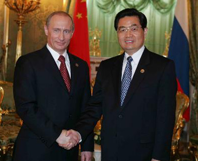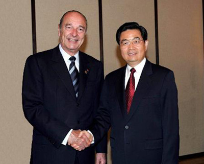 President Hu Jintao meets French President Jacques Chirac in Moscow.