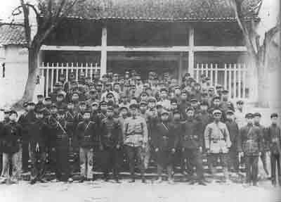 Officers of the Second and Sixth Red Army Group took a group photo in the seat of Dading County, Guizhou Province.