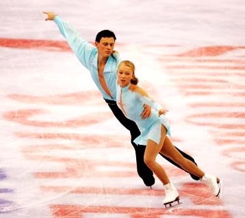 Russian Tatina Totmianina and Maxim Marinin at Skate America, on the first stop on the ISU figure skating Grand Prix in Pittsburgh, Pennsylvania.