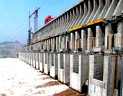 The upper part of the Three Gorges Dam looks tranquil like a lake.