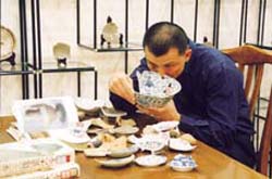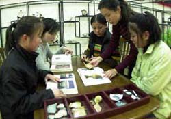 Among the numerous pieces of ancient porcelain, the most treasured are those fired in the Ru kiln. One of the five famous kilns in China, the Ru kiln was used for just 20 years of China's long porcelain producing history. It was in the late Northern Song Dynasty (960-1127) that this technology first evolved in China. Porcelain fired in the Ru kiln was mainly used for tributes. There are currently altogether 60 pieces extant and in good condition in the world, mainly distributed throughout Taiwan, UK, Japan and USA, earning Ru kiln porcelain a high reputation. With the aim of collecting Ru kiln porcelain, the Beijing Mumingtang Ancient Porcelain Museum has gathered over 10,000 pieces (including fragments). They are on show in a special room, and make a dazzling display.