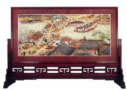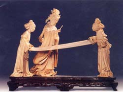 Visiting Beijing Arts & Crafts Museum, seems marching into the artistic palace. The masterpieces make you full of passion, they are entirely marvelous artistic works. Master Pan Bing-heng`s jadeite carving "Elephant Lei"is with a supernatural story. You may feel that it`s a perfect integration from the bronze shape and jade carving. The white jade Jigong Monk is designed and carved by Master Wang Shu-sen, it`s praiseworthy by every visitor. Master Liu De-ying is good at carving flower & birds. He created coral "All the Birds Worshipped the Phoenix", attracts the everyone . The agate Dragon Plate,is well known at home and abroad. Generally each exhibit shows us that Chinese people`s wisdom and talent. The large size pair ivory carving New Look of Beijing; Beijing`s Old Scenery are accomplished in 1960`, the subject mattes is derived from Beijing 60` famous 10 constructions, and street scenery in old Beijing. You may enjoy old Beijing`s local condition & social costumes , more than 300 figurines are lifelike. Which is to used display in Great Hall of the Peoples and the Hall of Tian An Men Rostrum many years. The sparkling gold filigree inlaid ware Thousand Hands & Eyes Guanyin,is designed by Master Wang Shu-wen. Guanyin solemnly & serenely put in the hall of BACM. The president Zhao Pu-chu, of China Buddhism Association in person of wrote epigraph "Hong Xiu Pu Yin" for this Guanyin. Master Gao Cong-li,who takes part in wood carving many years,he engraved wood ware is quite superb. He created wood carving Liang Shanbo & Zhu YingTai very successfully, is to be called Chinese edition of Romeo & Juliet. The carved lacquer "Flower-Basket Plate" is enjoyed highly prestige in the world. This is the first three-dimensional lacquer carving works, which is created by Master Du Bingchen. In 1984,this carved lacquer "Flower Basket Plate" is to be awarded golden medal at Leipzig World Expo in German.