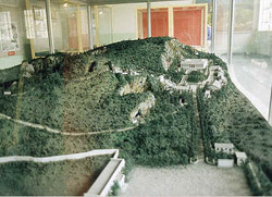 The front of the exhibition hall is a solid model of Longgu Mountain, with stone specimens dating back 100 to 400 million years in the Zhoukoudian area in the display cabinets, reflecting the geological changes in history. The models of the fossilized skulls, the fire relics and various stone tools of the Peking Man are exhibited in the No.1 Hall. The restored cave of the Upper Cave Man is in the No. 2 Hall. The No.3 Hall contains a necklace made by the Upper Cave Man as well as a model of the distribution of amniotes fossils and the dwellings of the ancient people. In the No.4 Hall are fossils of the ancient people found both in China and all over the world at different periods, stone tools and drawings, paintings and other artworks of the Paleolithic Period.