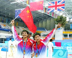 Tian/Yang led the diving from the second round, finishing with 383.88 points, more than 12 points ahead of Britain's Peter Waterfield and Leon Taylor.