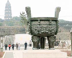 Tiger Hill Pagoda: The pagoda standing on the hill's summit is part of the Yunyan Temple. The oldest pagoda in Suzhou, it serves as a landmark of the city. Built during the Northern Song Dynasty (959-961), the 48-meter-high seven-story octahedron has leant towards the northwest in the past 400 years.