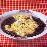 Ingredients: 3 eggs 5 grams (1/6 oz)laver(dried red seaweed) 15 grams (3 tsp.) cooking wine 5 grams (1/6 oz) finely cut scallions 1 gram (1/2 tsp.) pepper powder 5 grams (5/6 tsp.) salt 2 grams (1/2 tsp.) MSG 5 grams (1 tsp.) sesame oil