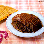 2. Continue to soak the beef in the juice until it cools off. Then cut hte beef into slices 6 cm (2.4 inches) long, 4 cm (1.6 inches) wide and 0.3 (0.12 inch) thick. Place on a plate and pour on some of the juice.