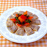 2. Quickly boil the lettuce. Take it out and cut into rectangles 8 cm (3 inches) long and 5 cm (2 inches) wide.