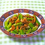 1. Wash the towel gourd clean and cut into shreds 5 cm (2 inches) long and 0.3 cm (0.12 inch) wide.