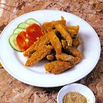 Ingredients: 250 grams (0.66 lb) pork ribs 10 grams (2 tsp) cooking wine 1 egg 4 grams (2/3 tsp) salt 1 gram (1/4 tsp) MSG 10 grams (1/3 oz) Chinese prickly ash 5 grams (1/6 oz) finely cut scallions 100 grams (0.22 lb) dry cornstarch 250 grams (1/2 cup) cooking oil 5 grams (1 tsp) mashed garlic