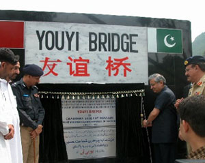 An inauguration ceremony was held in Thakolt on Tuesday to name the bridge "Youyi" (Friendship) to commemorate Chinese and Pakistani workers who devoted their life to the construction of the bridge between 1966 and 1978.