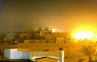 Large orange multiple flashes lit the night sky, said the witnesses, adding a large cloud of smoke was rising from an ancient cemetery where Sadr militiamen have fought US troops for two weeks.