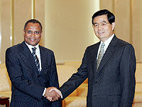 Chinese President Hu Jintao met in Beijing Thursday with visiting Prime Minister Jose Maria Pereira Neves of Cape Verde.