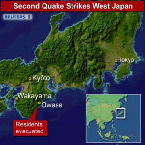 "The second one was bigger than the first," said a man who was sheltering in a school. "I was surprised. We'd suffered damage from tsunamis in the past so I decided to evacuate." An official in Wakayama City said he saw what appeared to be a tidal wave 1 meter high surging up a river, NHK said.
